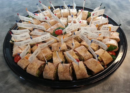 Sandwichs (œuf, jambon, poulet) Salades de macaroni, pommes de terre et rotini aux légumes